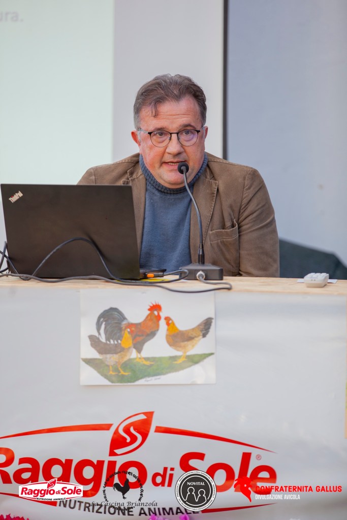 Si ritorna alla storia dell’avicoltura italiana: ora è Emanuele Oggioni a prendere la parola con una una splendida presentazione inerente i suoi lavori di recupero di razze storiche a rischio di estinzione come la Gallina della Ritirata.