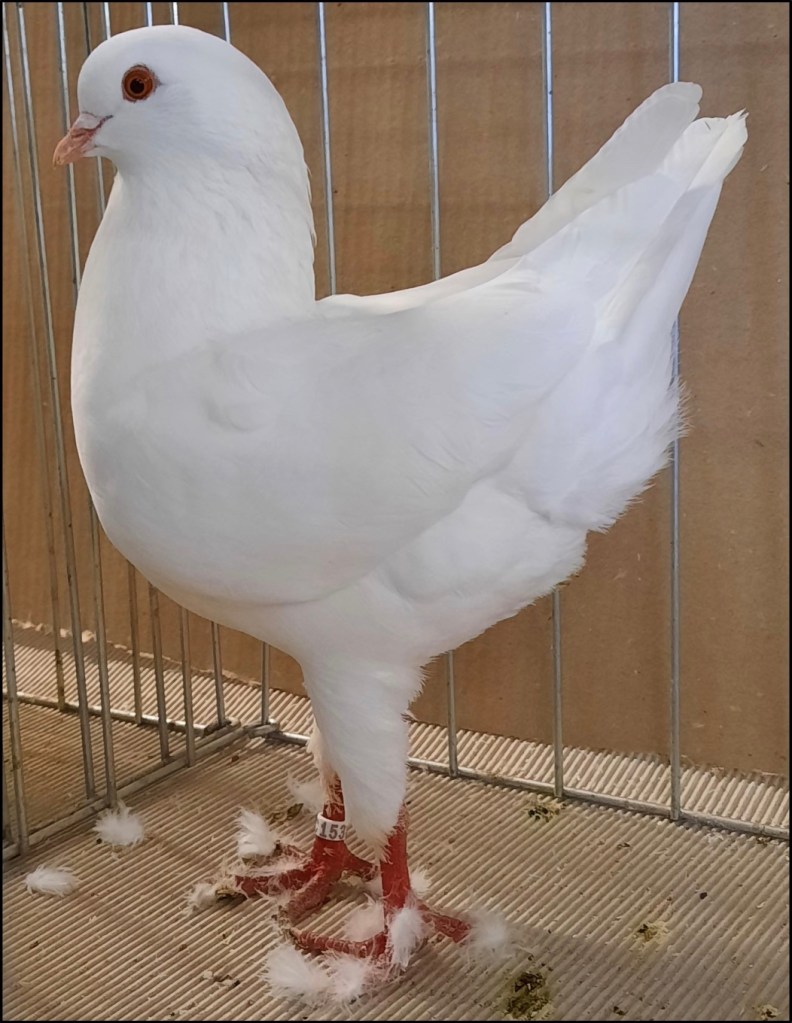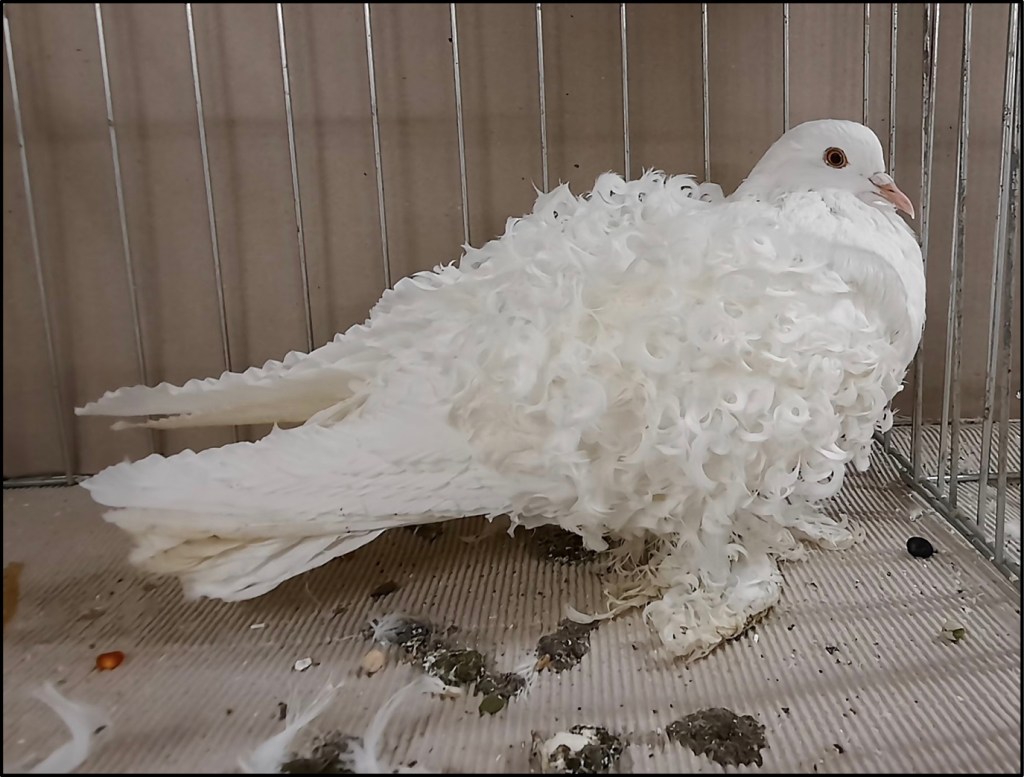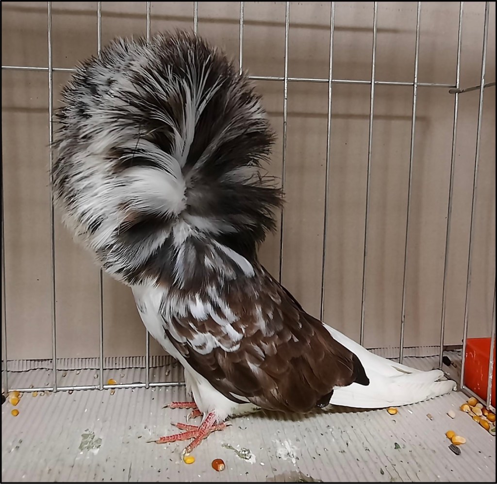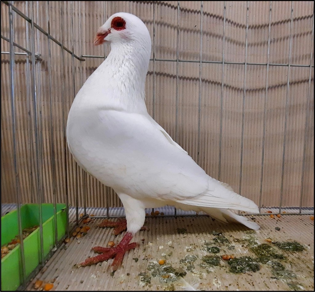 Avere la possibilità di girare tra le gabbie insieme a Claudenti per me è stato un vero onore: un po’ come entrare al museo con la guida che ti spiega ciò che stai ammirando, con Marco, giudice FIAC di colombi gozzuti e colombi Italiani di taglia grande, è stata una continua lezione, in cui ho cercato di memorizzare il più possibile. I miei occhi si sono illuminati di fronte ad ogni animale, dato che, come ho scritto sopra, si rendeva in quell’istante tangibile un mondo che fino a quel momento era stato per lunghi tratti solo “digitale”. A fianco del mio compagno di viaggio il mio sguardo si muoveva su peculiarità e difetti dei vari colombi sempre con un occhio attento a quello che era il cartellino, documento di valutazione rilasciato dal giudice FIAC designato il giorno precedente in fase di valutazione.