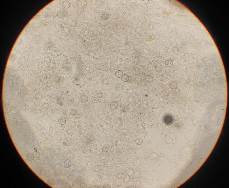 –Eimeria acervulina: la più comune in allevamento, è principalmente situata nell’intestino tenue (piccolo intestino), la sua oociste è medio-piccola e la sua patogenicità non è particolarmente spinta ma dipende dalla quantità di oocisti ingerite. Un infezione massiccia può portare a cali di crescita, lesioni intestinali biancastre a placche e in alcuni casi morte del soggetto.