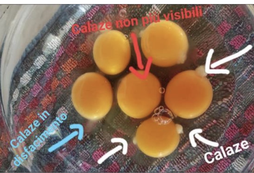 Il tuorlo di un uovo fresco però non può permettersi di galleggiare libero nell’albume in quanto rischierebbe di danneggiare un eventuale embrione… ecco perché nella sua discesa nell’ovidutti viene avvolto da uno strato proteico denso chiamato membrata vitellina (non
