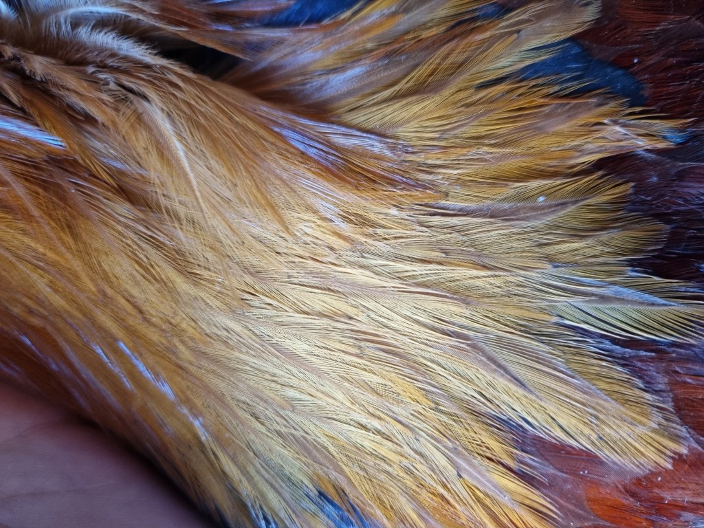 I galli delle due colorazioni, ad un occhio poco esperto ma talvolta anche ad allevatori di esperienza, possono sembrare identici, senza differenze… ma se guardiamo nel dettaglio, le differenze tra le due tonalità di piumaggio, Selvatica Oro e Dorata Frumento ci sono: le zone di colore dove nei dorati frumento sono arancio/dorate, nei Selvatici Oro sono più cariche di pigmento, ovvero, un bruno dorato. Un’altra caratteristica che può aiutarci nell’individuazione delle differenze tra queste due colorazioni si trova nella mantellina, dove, le piume lanceolate alla base del collo ,nella colorazione Selvatica Oro, hanno nella loro parte terminale delle fiamme nere a riflessi verdi… cosa che non troviamo nella mantellina dei Dorati Frumento, dove invece queste piume diventano più chiare nella loro parte finale, con assenza di fiamme nere.