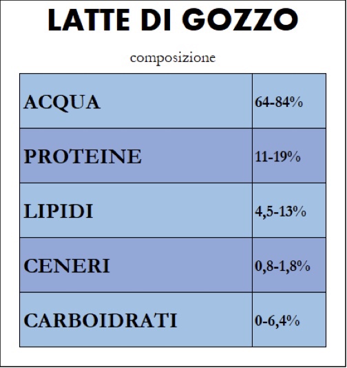 La rapida velocità di accrescimento dei pulli è dovuta alle qualità del latte di gozzo: composto lattiginoso formato da cellule di sfaldamento del gozzo estremamente proteico e lipidico che garanisce al piccione appena nato le risorse per raddoppiare il proprio peso nell’arco di 2 giorni (in un parallelismo con il mondo avicolo al pulcino occorrono 9 giorni ed all’anatroccolo 6) e mediamente nelle prime 4 settimane aumenta di 15-20 grammi al giorno.
