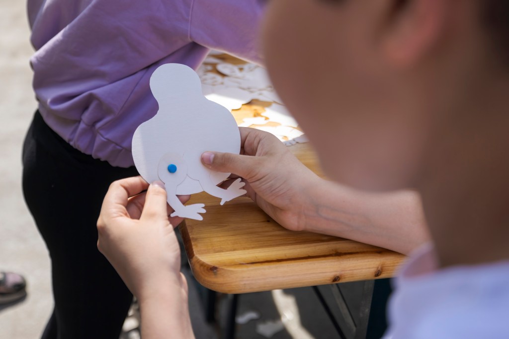 Ispirato all’idea originale che ogni razza di gallina abbia elementi caratterizzanti che la rendano unica, erano stati forniti ai bambini tante sagome diverse con zampe, creste, dorsi diversi ed assemblandole e colorandole avrebbero potuto creare la gallina che preferissero. Grazie a Anna Donneschi e Daniele Pagani sono state disegnate e costruite delle sagome simpatiche!