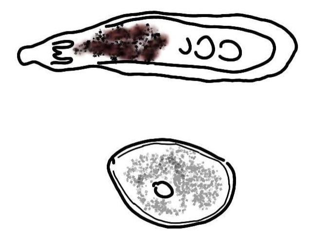 NB Questo parassita può essere portatore del protozoo istomonas (Istomoniasi) che si accumula nelle uova di Heterakis e viene emesso con le feci.