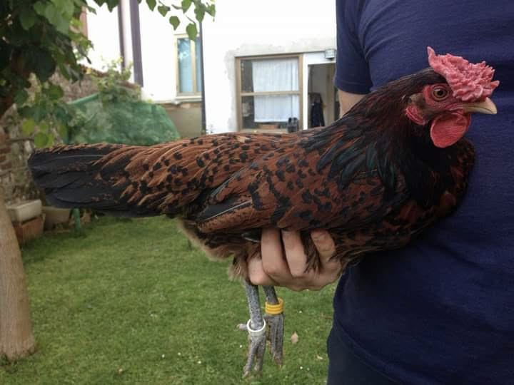 Parliamo di RedCap: “E’ un’animale molto irrequieto” – Continua Efrem – “Specialmente se allevati nei box, ho notato che spesso sono le galline che tormentano il gallo ed è una delle poche cose che odio in loro, non è paragonabile l’allevamento in box all’allevamento allo stato brado di questa razza, nel secondo caso risultano animali molto più tranquilli e rilassati. Io le ho sempre tenute libere nel terreno dietro casa, ma ora che le tengo principalmente nei box fanno sempre un putiferio.” Efrem nella sua selezione guarda la taglia, il petto del gallo che sia nero intenso e principalmente la testa e la cresta: “ La sciabola con cui termina la grossa cresta dev’essere una ed una sola, purtroppo non trovo più le foto ma anni fa avevo un gallo con una cresta inaudita di circa 14 x 10 cm!!!” Efrem non condivide la teoria sulla bassa fertilità dei soggetti con cresta a Rosa: “Ho sempre lavorato in purezza e non ho mai avuto problemi di fertilità, le ho da 10 anni e solo due galli provengono dal difuori del territorio Italiano: un gallo Inglese che proviene da Vedani e un gallo tedesco acquistato a Lipsia nel 2018”. Alla richiesta di alcuni consigli per allevare al meglio questa razza Efrem risponde così: “Sono polli a duplice attitudine, allevateli all’aperto: saranno più rilassati e vi daranno maggiori soddisfazioni” Al momento Efrem seleziona anche Civette Barbute Olandesi nella colorazione Argento Testa di Moro e Mantes nella colorazione Nera Picchietata di Bianco.