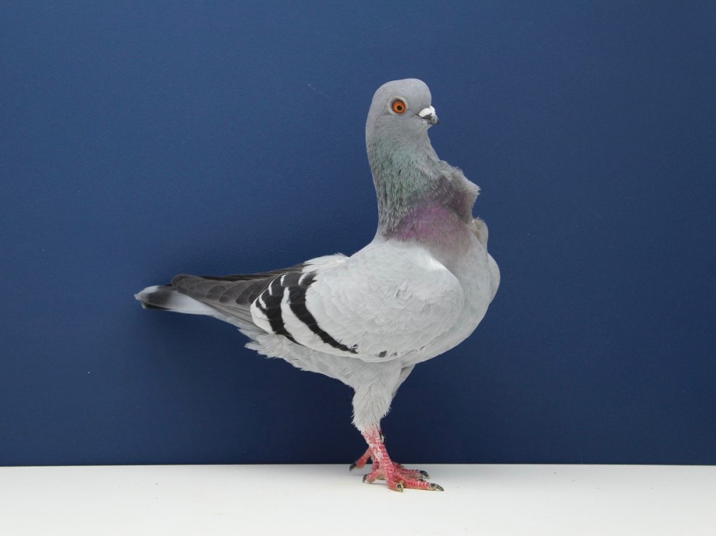 La testa è piuttosto corta, larga e spigolosa e, osservata di profilo, risulta di forma squadrata, poiché appiattita nella sua parte superiore, generando un leggero angolo dietro la nuca del colombo che si collega al collo che deve essere dritto e senza curvature: questa caratteristica è particolarmente ricercata, dato che si cerca di evitare il così detto “collo di cavallo”.