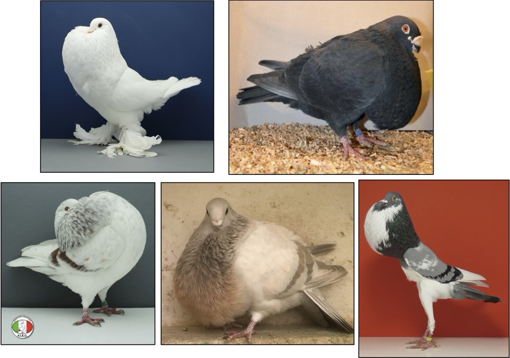 Ad ogni modo all’interno di questi due macro raggruppamenti oggi esistono razze dalle caratteristiche fisiche più svariate: la colombofilia, nell’importante lavoro di selezione ed approfondimento della biodiversità già avviata dalla Natura, ha intensificato l’ampliamento dello spettro dei colombi gozzuti; in molti casi infatti una fisiologia diversa tra le razze diventa particolarmente evidente se si guarda l’animale nel suo insieme: abbiamo colombi piccoli, alti e slanciati, o rotondeggianti, alcuni con i tarsi implumi ed altri con folte pantofole…