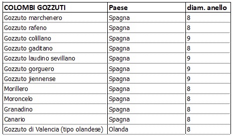 Particolare come nella lista dei g. iberici compaia un colombo “Olandese”: