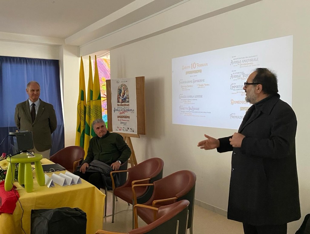 Verso le 11 iniziano le conferenze seguite con interesse da un’ottantina di persone in sala. Dopo una breve introduzione di ringraziamento del sindaco di Sternatia , prende la parola Tito, che va a presentare il professor Dimitri il quale fa un piccolo inquadramento storico-culturale dell’allevamento rurale del Pollo nelle campagne Pugliesi, raccontando anche qualche piccolo aneddoto storico, andando a inquadrare la Gallina Leccese; successivamente prende la parola il professor Landi presentando il progetto BioZoocare, che si impegna nella ricerca e il recupero di animali autoctoni Pugliesi.