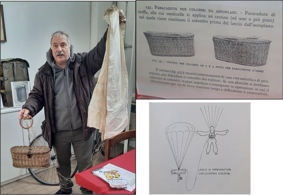 come il sig. Sacchetti mostra nella foto di sinistra all’interno di una cesta in vimini venivano paracadutati