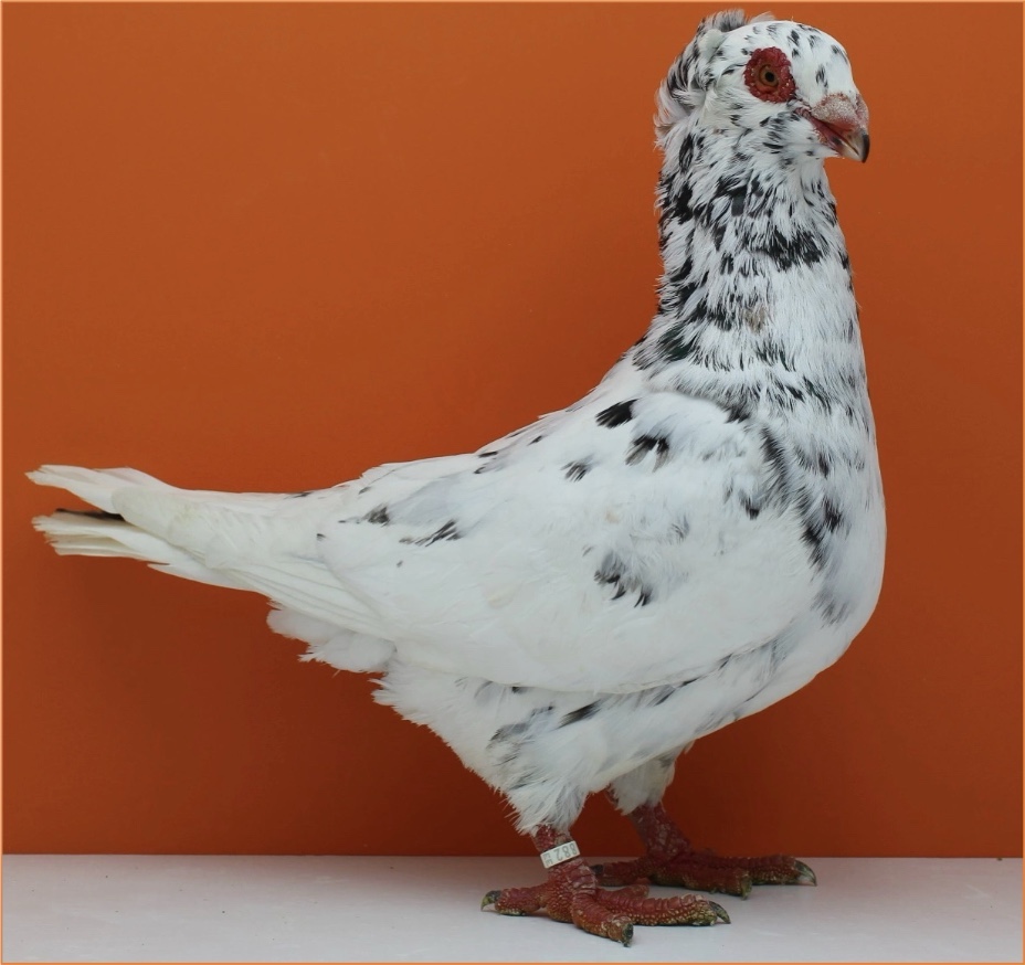 Oltre al peso sono proprio alcune sue parti del corpo che lo inseriscono di diritto nella categoria dei colombi di taglia grande: la prima volta che lo vidi esposto notai subito le zampe ed il becco, entrambi grossi e possenti. Io infatti, abituato a colombi cittadini, vedendo dei tarsi nudi di questo spessore rimasi sorpreso: giustamente per sorreggere una struttura fisica del genere anche la zampa deve essere proporzionata al resto del corpo. Ed inoltre il becco: possente e spesso, per quanto corto, quasi a ricordare un uccello tropicale solito a rompere gusci. Ovviamente questo è quello che notai da neofita, ma l’impressione fu reale: dato di fatto è la catalogazione particolare di questa razza tra i Fortirostri, volatili a “becco forte”.