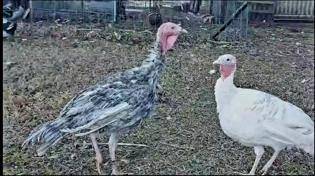Il primo di cui vi voglio raccontare è relativamente recente. Stanco di vedere l’ondulina del tetto del pollaio rotta per via del tacchino a cui piace tanto quel posto sopraelevato per dormire, ho voluto provare ad allevare i tacchini Ispidi Padani di Michele Rocco. Con il loro piumaggio non riescono a raggiungere la sommità del tetto; c’è un però: a me piacciono i tacchini monocolore. Da qui l’incrocio per sostituzione di una femmina ispida color ermellinato con un tacchino a piumaggio normale tinta unita.