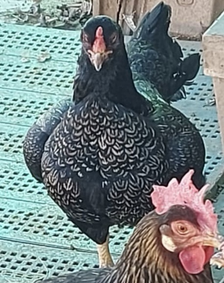 Simile ma con una specie differente, il mio secondo progetto è il Cornish argento doppia orlatura nera. I primi animali mi sono stati forniti dall’ allevatore Andrea Moretti, il quale aveva iniziato questo progetto incrociando Brahama argento columbia con il suo ceppo di Cornish. Dopo qualche anno di selezione ha passato a me il testimone, e ricercando la giusta mole con femmine pure e usando i galli argento da lui allevati eravamo ad un punto intermedio: con animali aventi petto, ma troppo alti sui tarsi e seppur di colore argento con orlatura singola, questo aspetto causato dal columbia ereditato dal Brahama. L’anno successivo è bastato un reincrocio tra prole e genitori per ottenere animali molto più in linea sia per colore che per forma.
