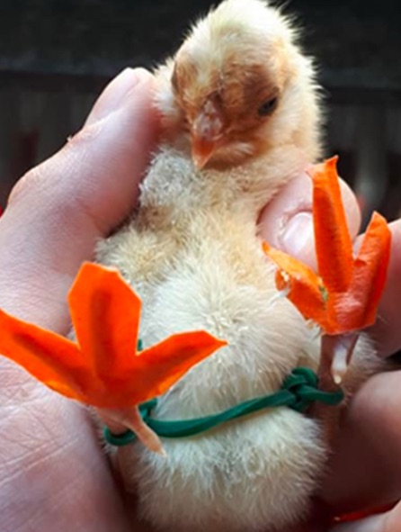 Un pulcino con dita arricciate se non compromettono la deambulazione può sopravvivere ma se si intende salvare l’animale sarebbe importante correggere per quanto possibile il difetto, creando con scotch carta una “scarpina” si supporto in cui le dira verranno stese nella posizione corretta. Il supporto andrebbe mantenuto almeno 48h prima di rimuoverlo e valutare il miglioramento.