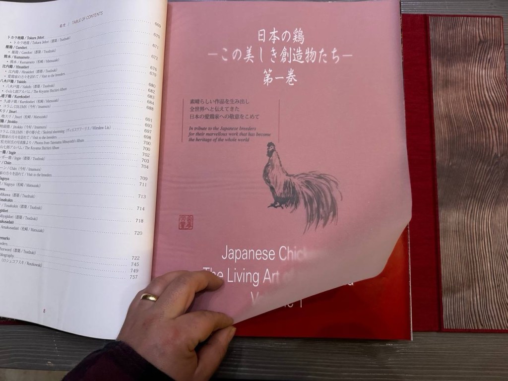 Era un pomeriggio di gennaio 2023, stavo facendo delle ricerche relative alla mia razza di pollo preferita: l’Onagadori, quando mi imbatto in alcune foto sul profilo facebook di Stanislaw Roszkowski e vedo qualche foto di questi due volumi in Inglese e Giapponese che illustrano parecchie Razze Nipponiche. Decido di contattare Stanislaw che subito disponibilissimo mi spiega di cosa si tratta: due volumi di circa 750 pagine in totale, con 1450 foto con il contributo di oltre un centinaio di autori e allevatori da tutto il mondo, per la maggiore Giapponesi; affascinato, non ho perso l’occasione e li ho acquistati immediatamente. Non voglio parlarvi di costi ora, lo farò in seguito, prima vorrei farvi rendere conto di quello che si ha tra le mani quando si parla di certi livelli di documentazione!